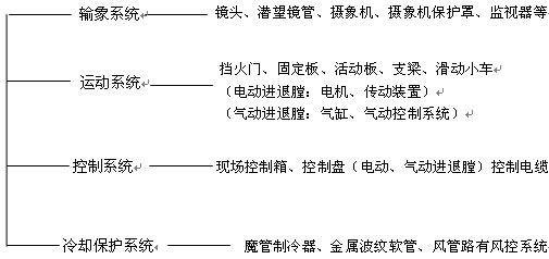 電動及氣動進退膛電視監視裝置,在冷卻風出現斷風故障時,能自動將潛望鏡管退出爐膛,以免燒壞輸象系統,操作人員也可在控制室內通過控制盤上的操作按鈕或電腦控制潛望鏡管的進退爐膛。