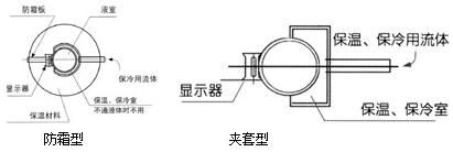 防霜型液位計(jì)主要用于零度以下的液體。低溫液體常在液位計(jì)表面結(jié)霜或冰無法觀看液面,在這種場合,可在顯示器前加裝丙烯基保護(hù)窗,整體加裝保溫材料,這樣就可經(jīng)通過保護(hù)窗觀察到正確液位。 夾套型(J):