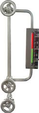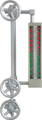 GYJ 雙色冷光源水位計是用于監(jiān)測鍋爐及壓力容器水位的一次直讀儀表,表體兩側(cè)視窗玻璃成一定夾角,儀表后側(cè)配置發(fā)光二極管光源,由于光學的折射及反射原理,氣相呈紅色,液相呈綠色,兩色界面即準確指示液面。